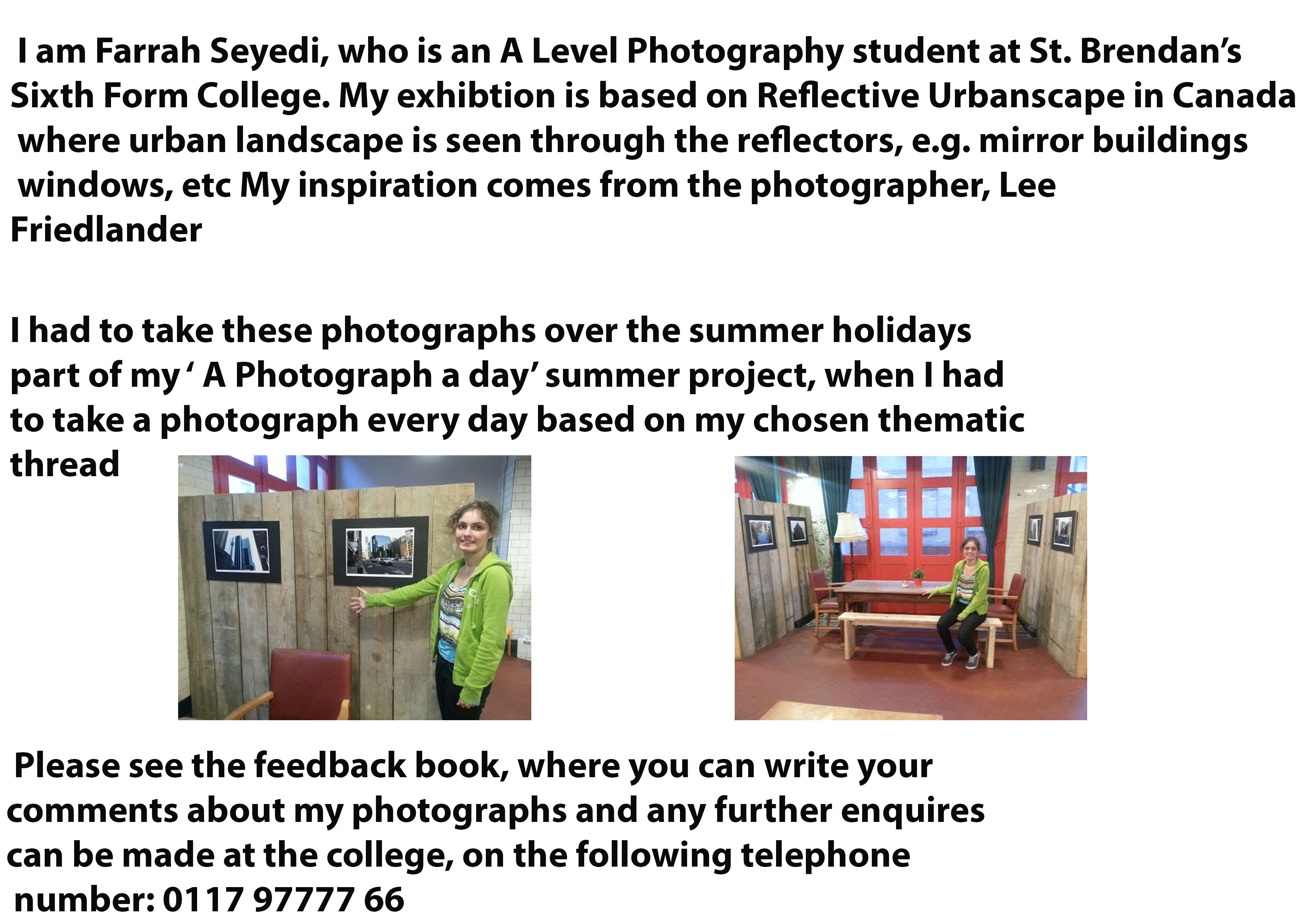 Farrah exhibited her A Level Photography at 'The Old Fire Station Cafe' in Central Bristol in October 2014...